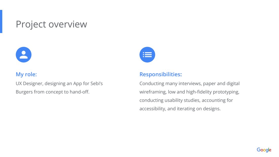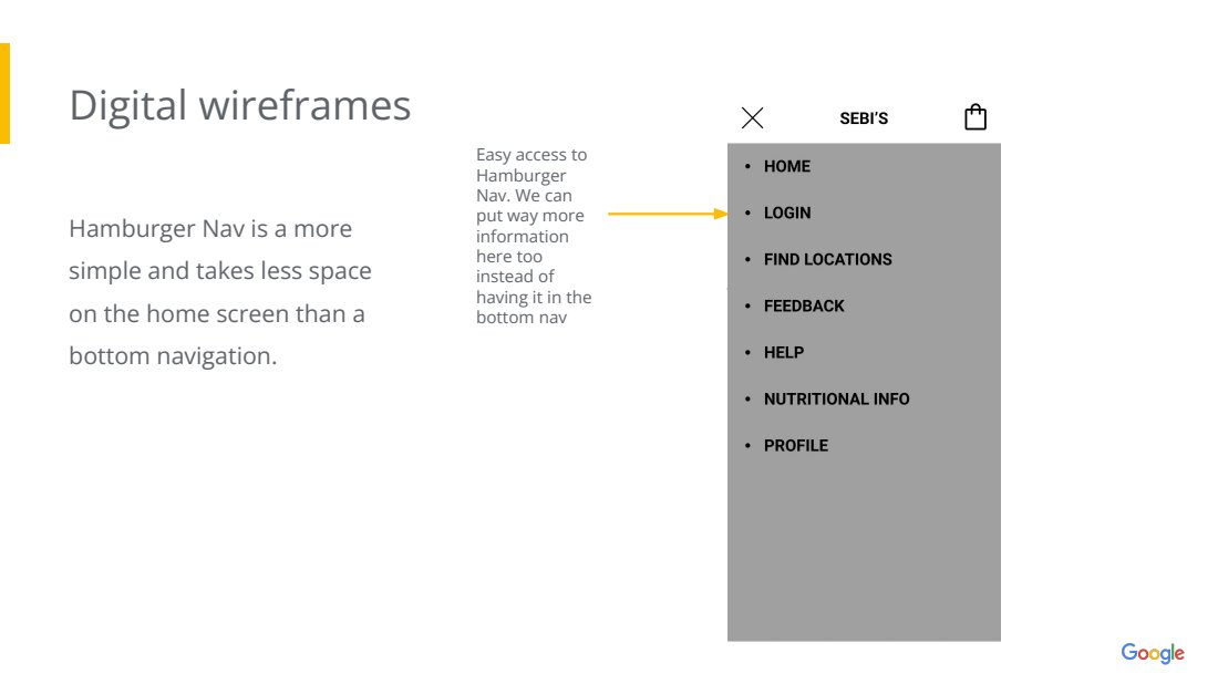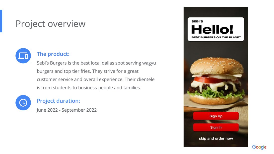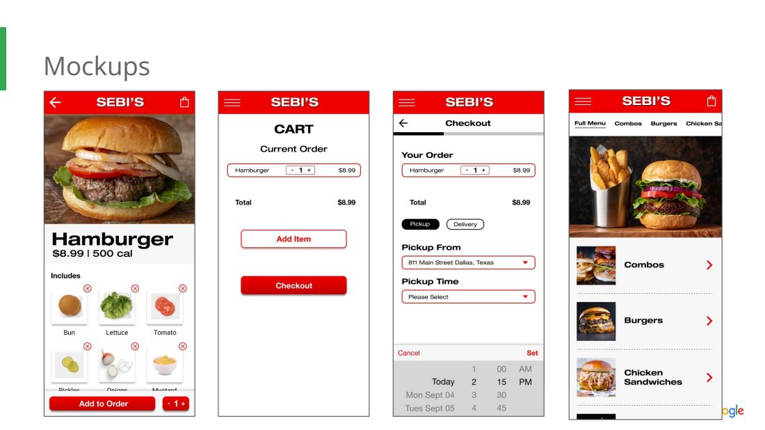 Sebi’s Burgers is a concept I came up with for my Google UX Design project. It is essentially a Burger shop that could exist in the future. My primary goal was to make it easy to use for people in any scenario. Whether you want to order early and pick up at a certain time, or pick up food as soon as possible. I also wanted to showcase my visual design skills and passion to create something that would entice the user the purchase and love to revisit.